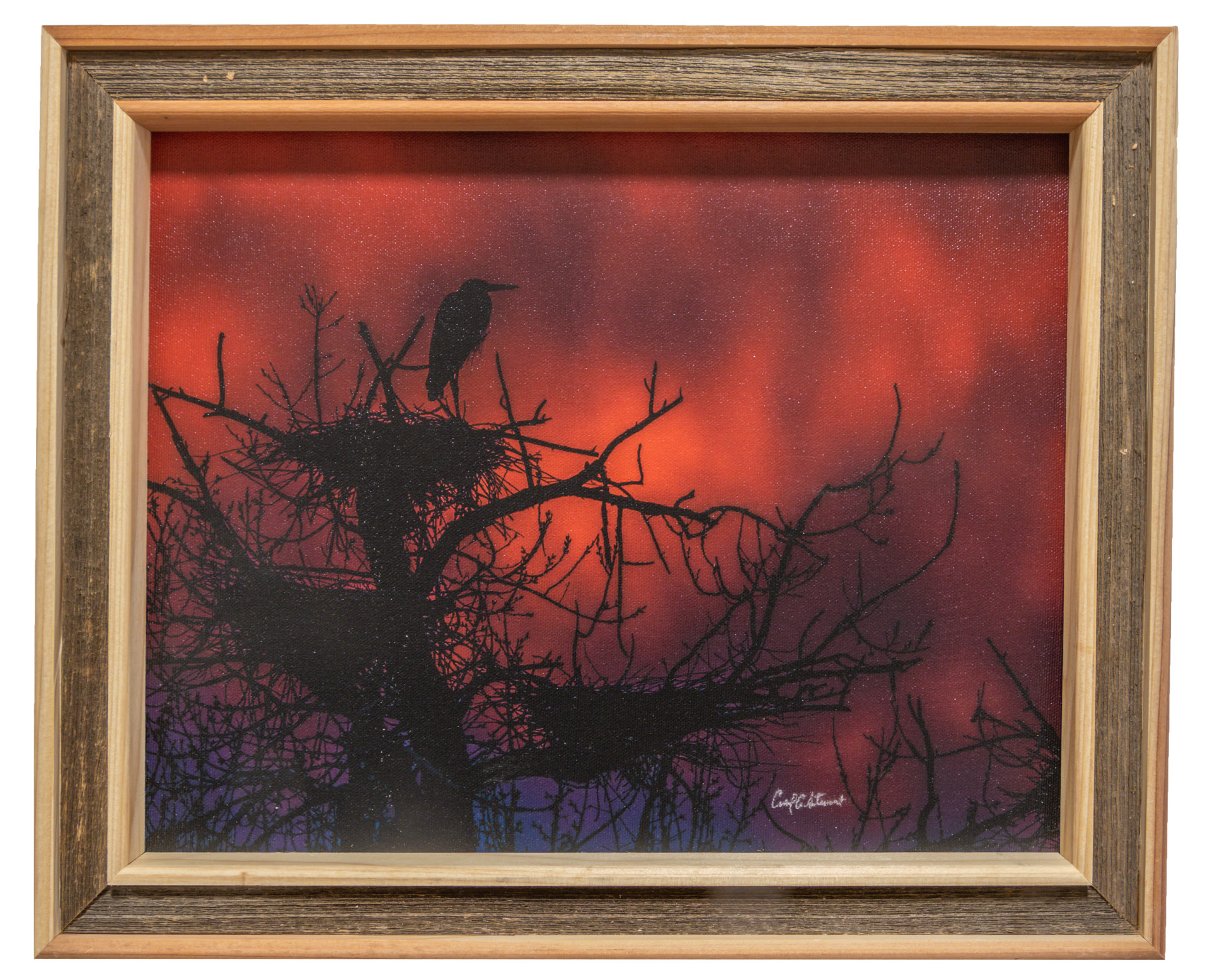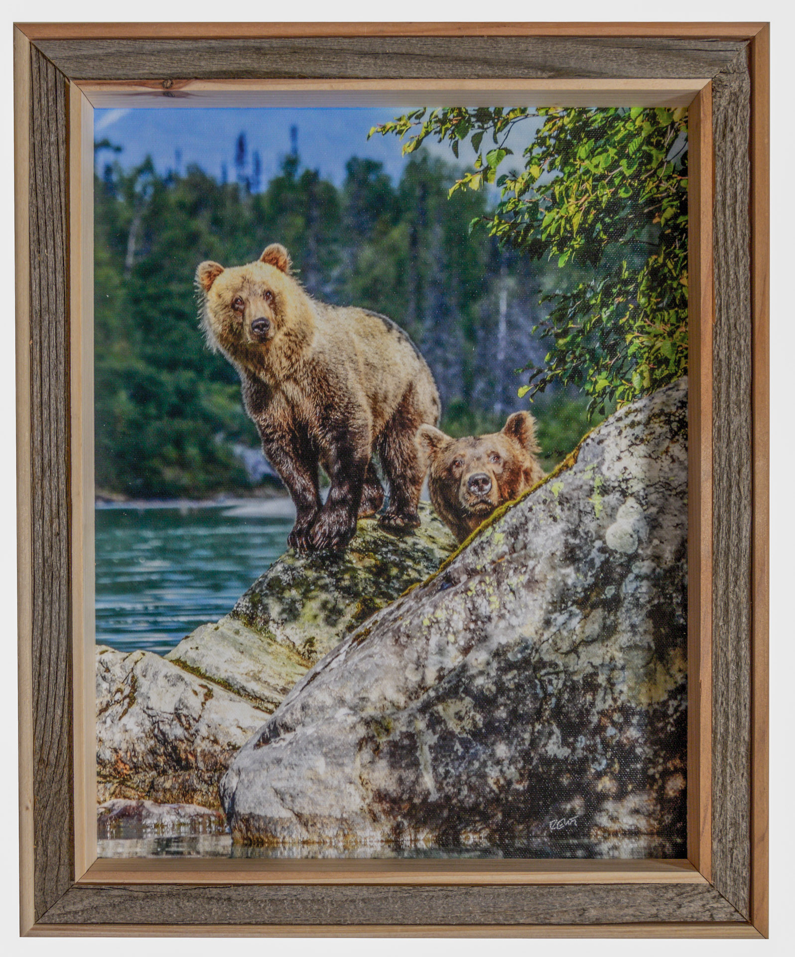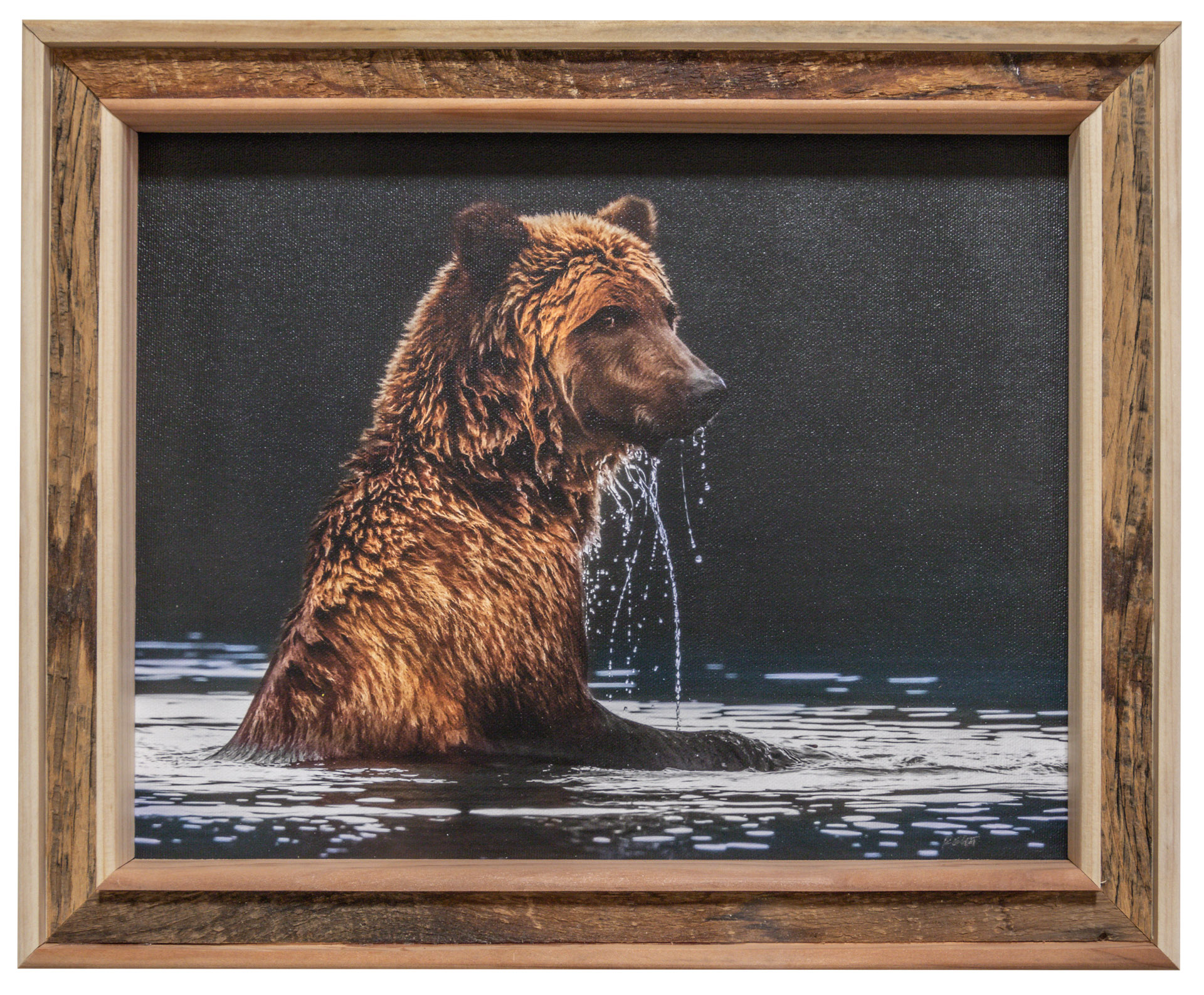 Our frames are hand made in our shop with wood sourced locally and reclaimed and aged wood (barn wood). Each frame is unique and we try to pick wood colors that compliment or match tones in the print that it encloses. Most frames are not stained or painted and are not finish sanded. Our goal is to provide a frame to carry on the "wild" feeling of our photography without distracting from the image.